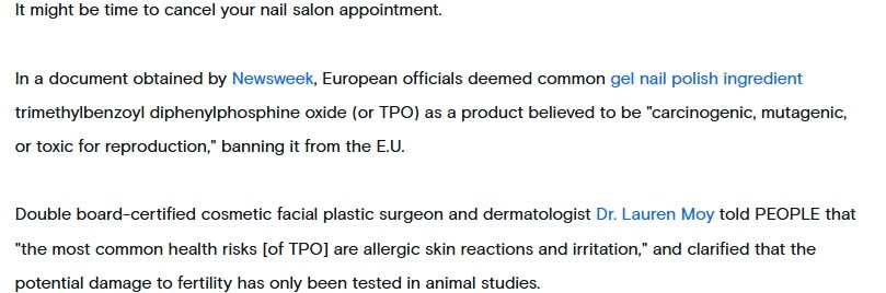 Home » Blog, News, and Events » Dr. Lauren Moy Featured in the AOL’s “Worst News for Gel Polish Users: Common Ingredient Banned in Europe”