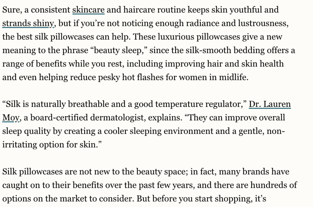 Home » Blog, News, and Events » Dr. Lauren Moy Featured in FlowSpace’s, “The 8 Best Silk Pillowcases for Silky Hair and Smooth Skin”